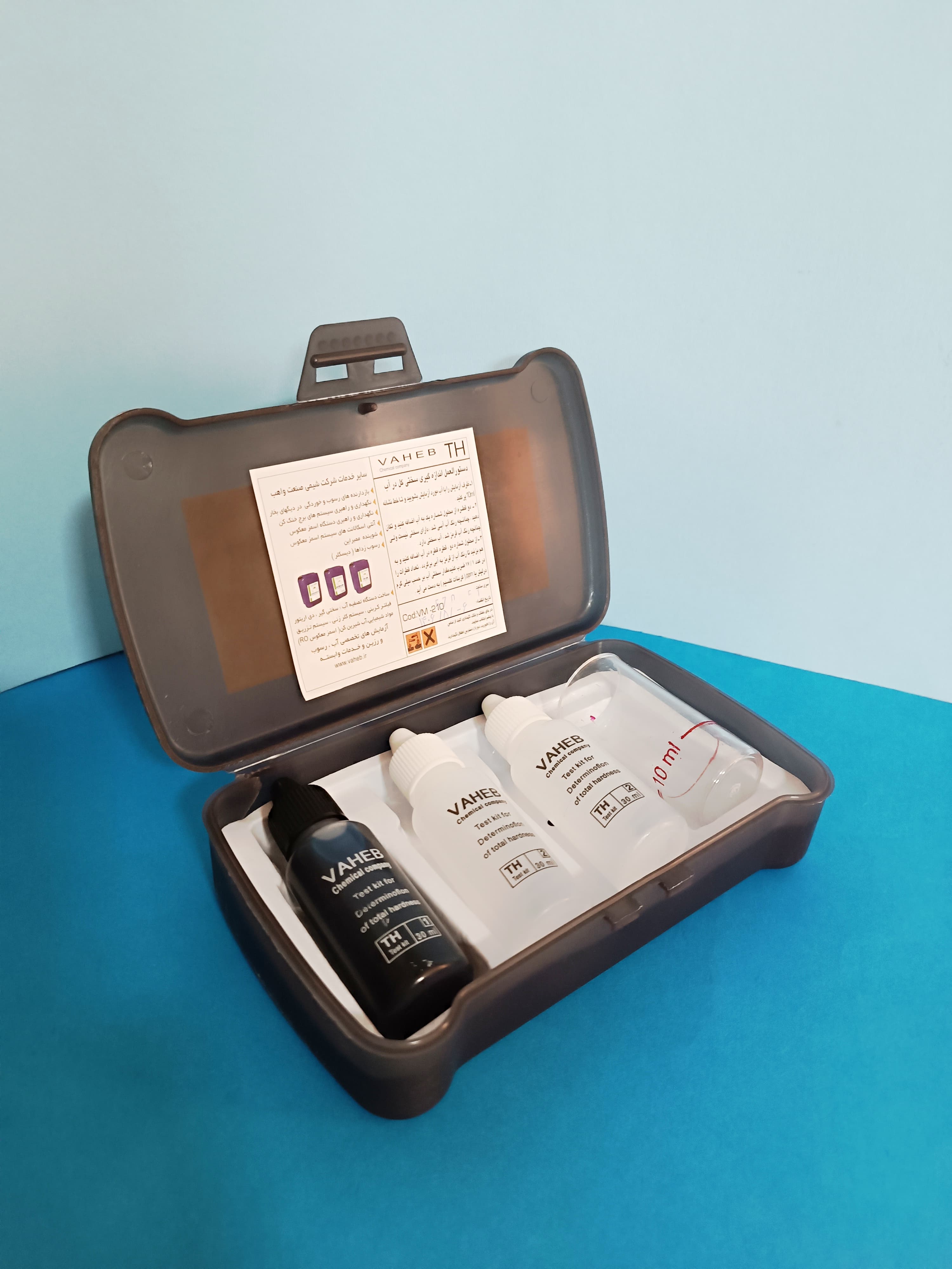 شیمی صنعت واهب ، کد vm210 همراه با ۳ محلول اندازهگیری به حجم ۳۰ سی سی و یک عدد بشر تاریخ انقضا 1406/05/06