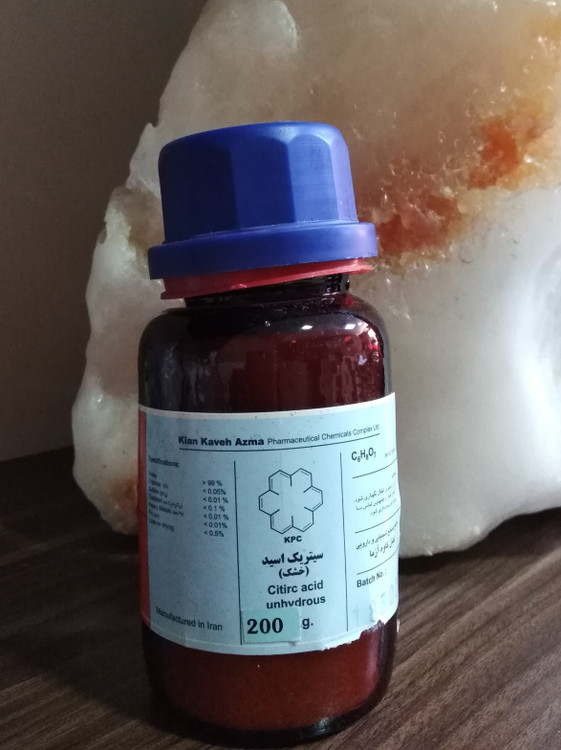 اسید سیتریک (Citric acid) با فرمول شیمیایی C6H8O7، جرم مولکولی 192.027 گرم و نقطه ذوب 153ºC یک اسید آلی ضعیف است. دارای مزه ای ترش و خاص است و همان اسید موجود در مرکبات (پرتقال و لیمو) است. این اسید ضعیف به دو شکل خشک و آبدار وجود دارد. اسید سیتریک در صنایع غذایی به عنوان نگهدارنده، تنظیم کننده اسیدیته غذا و یک عامل ضد میکروبی کاربرد دارد.