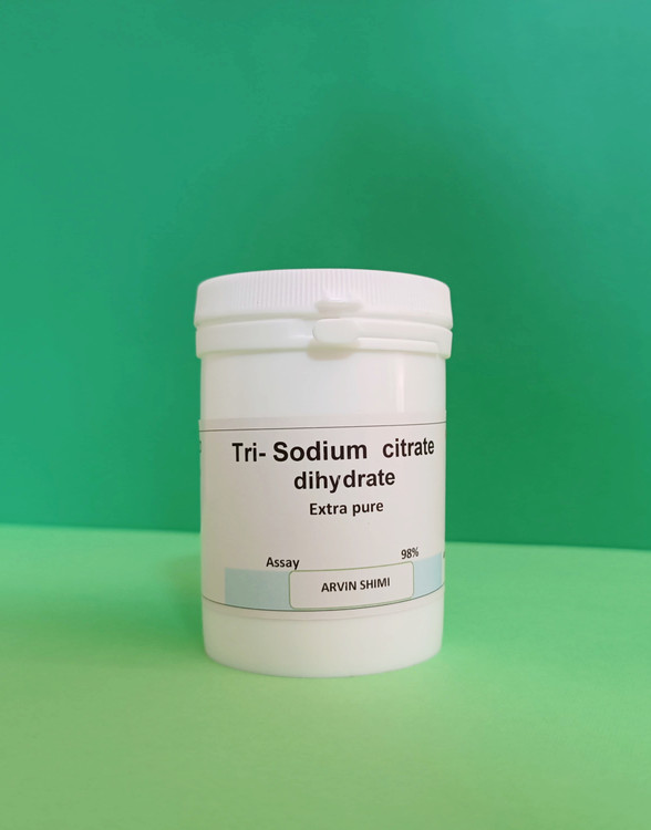 تری سدیم سیترات دی هیدرات با فرمول مولکولی C۶H۵Na۳O۷.۲H۲O پودر کریستالی بی بو،بی رنگ با طعم شور و خنک است. سیترات سدیم هیچ اثر سمی ندارد و از قابلیت تنظیم PH و همچنین ثبات مناسب برخوردار است و بنابراین می تواند در صنایع غذایی به عنوان ماده افزودنی غذایی مورد استفاده قرار گیرد.